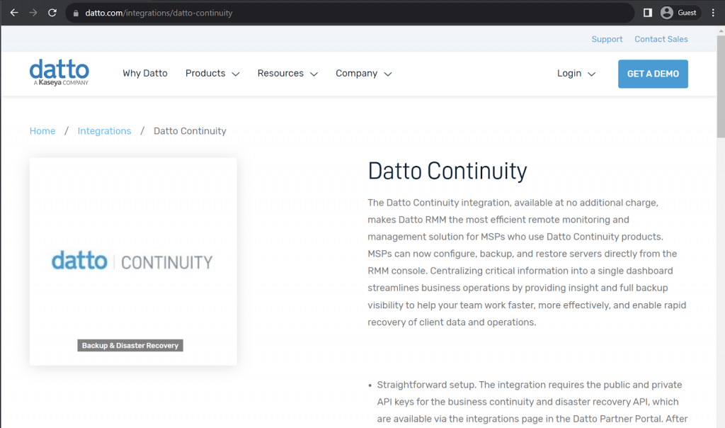 Datto Continuity works as a free integration to Datto’s flagship software – Datto RMM (Remote Monitoring and Management). Datto Continuity specifically is a business continuity and disaster recovery solution first and foremost, it copies existing Azure data to its own servers on a regular basis in order to act as an additional backup storage in case the business needs it. This particular feature set extends the original’s capability to control and manage endpoints remotely, offering an unusual feature set to its clients. However, its backups have been criticized as unreliable and technical support leaves something to be desired.
