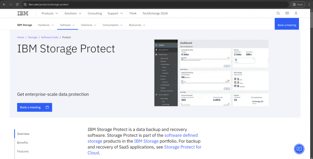IBM Storage Protect is the last iteration of a data protection platform from a well-known technological giant. The solution in question was known as IBM Spectrum Protect and Tivoli Storage Manager before, going through multiple iterations to achieve the feature range it can offer today. Storage Protect provides backup and recovery capabilities alongside disaster recovery with an agentless virtual environment. It can work with several different storage types, and its per-volume pricing model would make it slightly less expensive for enterprises that work with large data masses on a regular basis.