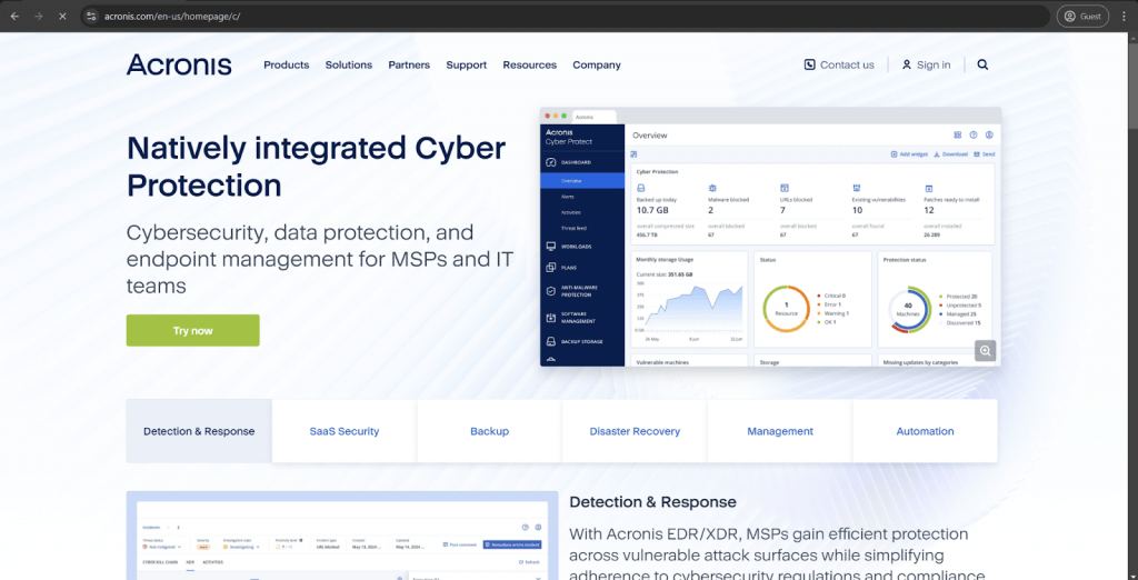 Acronis is a great software provider with a substantial focus on cybersecurity, with Acronis Cyber Protect being their prime offering. The solution can offer extensive data protection capabilities in multiple ways while also providing backup and recovery features and data management with support for many types of environments. Its total feature range also makes it a viable alternative to Cohesity with some limitations. The software is quite demanding resource-wise and can be expensive in large and complex environments, which makes it only suitable for a limited range of clients on the market.