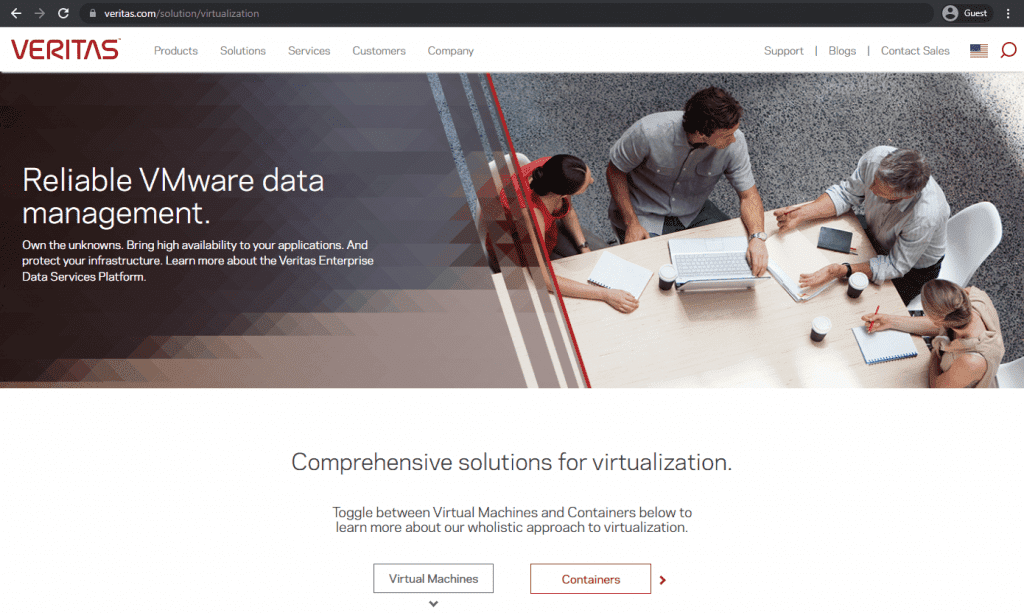 Als bekannter Experte für Datensicherung und Backups bietet Veritas auch VM-Backups an und unterstützt VMware, Red Hat, Hyper-V, Nutanix AHV und mehr. Sie bietet agentenlose Sicherungen, effiziente und skalierbare Datensicherung, Schutzautomatisierung und mehr.