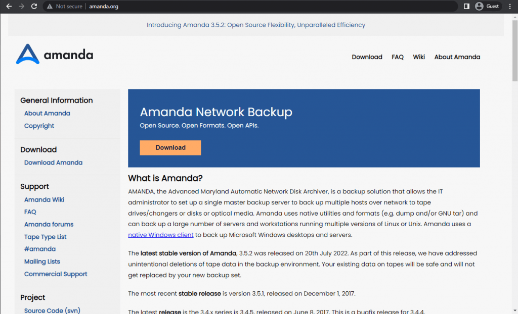 El ejemplo anterior no significa que todas y cada una de las soluciones de esta lista vayan a ser caras y capaces de realizar multitud de operaciones diferentes a las de copia de seguridad y recuperación. Por ejemplo, aquí Amanda es un software de copia de seguridad de servidores que es gratuito y de código abierto. Puede implantarse en Linux e interactuar tanto con servidores como con puntos finales en Windows, Linux, Unix y MacOS.