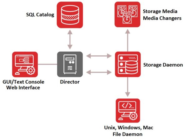 L’estrema flessibilità di Bacula nell’adattarsi e inserirsi in un ambiente utente senza compromessi favorisce intrinsecamente la sicurezza dell’organizzazione, e non può essere sottovalutata. L’architettura modulare di Bacula non necessita, né consente, la comunicazione bidirezionale tra i suoi singoli elementi, il che elimina in un colpo solo le vulnerabilità di sicurezza fondamentali di cui soffre la maggior parte dei suoi concorrenti. Le eccezionali qualità di sicurezza di Bacula sono moltiplicate in modo esponenziale dal semplice fatto che, sebbene Bacula sia in grado di proteggere praticamente tutti i dati da qualsiasi sistema operativo, il suo motore principale gira su Linux. Di conseguenza, è significativamente più sicuro dei suoi concorrenti.