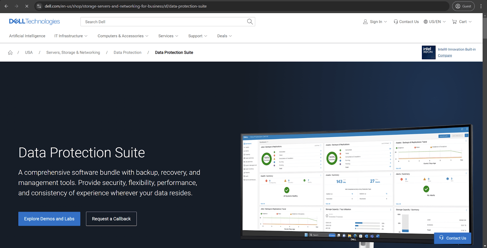 Dell Data Protection Suite è una soluzione di protezione dei dati aziendali che è una combinazione di diversi prodotti Dell nello stesso pacchetto: Avamar, PowerProtect e altri. Può offrire ampie capacità di integrazione dell’hardware e una serie di funzioni avanzate, come l’analisi del backup con AI o il monitoraggio automatizzato della conformità SLA. È anche flessibile e scalabile, con un’ampia scelta di funzionalità di integrazione hardware.