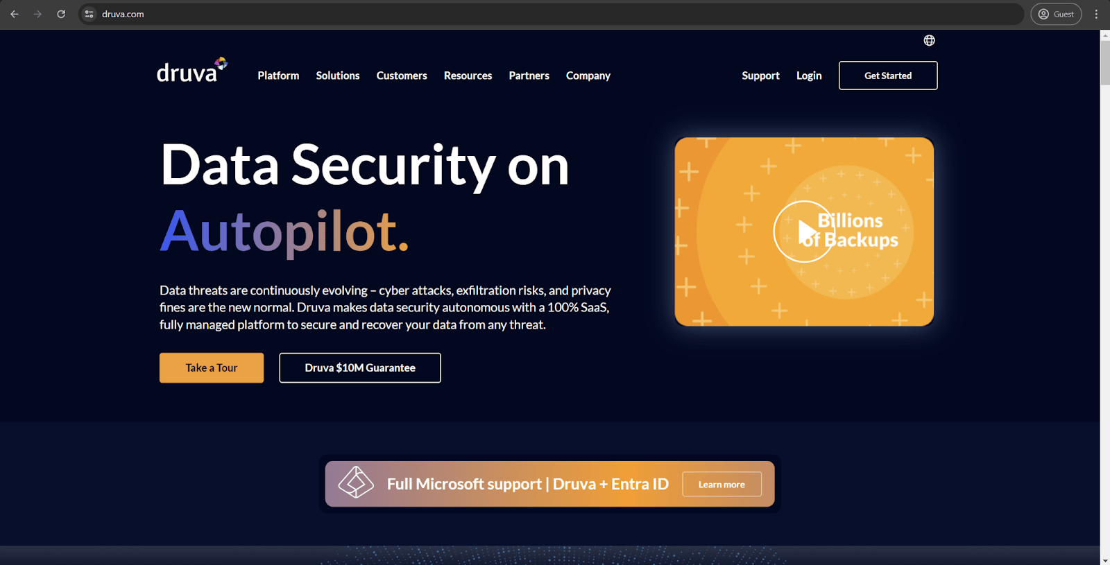 Druva è un altro esempio di soluzione di protezione dei dati cloud-native con funzionalità di backup aziendale. Viene fornita utilizzando un modello di licenza software-as-a-service senza la necessità di distribuire nulla in sede, migliorando notevolmente la mobilità della soluzione. Può anche offrire un monitoraggio integrato della conformità, un’ampia protezione contro il ransomware e un impegno per un approccio a zero impronta hardware/software.