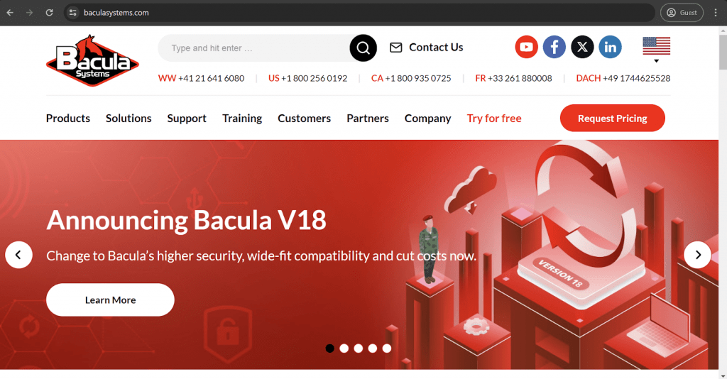 - Uma das grandes vantagens de preço do Bacula é que ele não cobra por volume de dados – esse é um ponto importante para organizações maiores, com volume de dados em rápido crescimento.